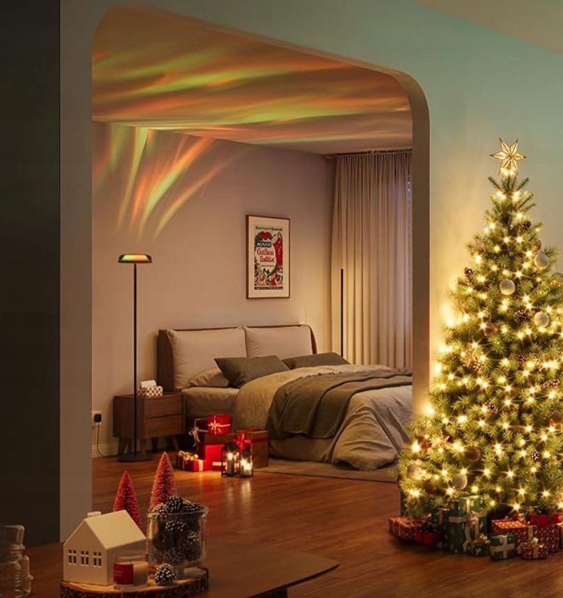 • Динамическое волновое освещение: потолочный прожектор Govee с вращающейся на 330° головкой создает регулируемый эффект водяных волн на потолке. Более 80 световых сцен и 16 миллионов цветов на стенах площадью около 20 м² создают приятную и расслабляющую атмосферу.