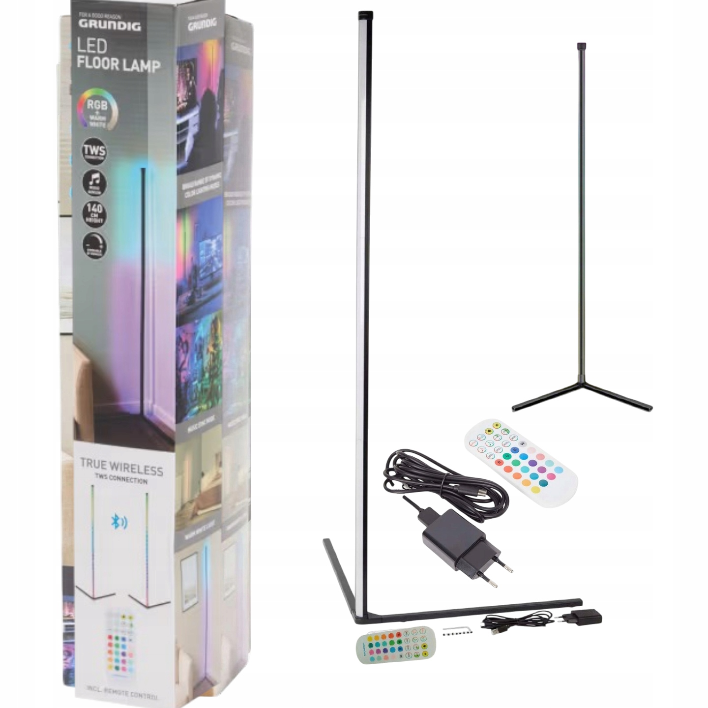 GRUNDIG RGB МУЗЫКАЛЬНЫЙ ДАТЧИК СВЕТОДИОДНЫЙ УГЛОВОЙ ТОРШЕР 140 см, пульт дистанционного управления
