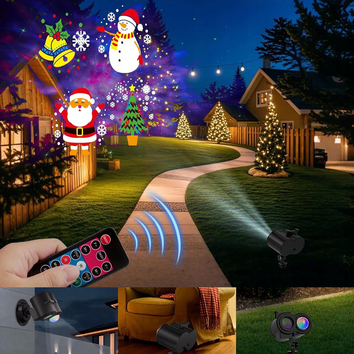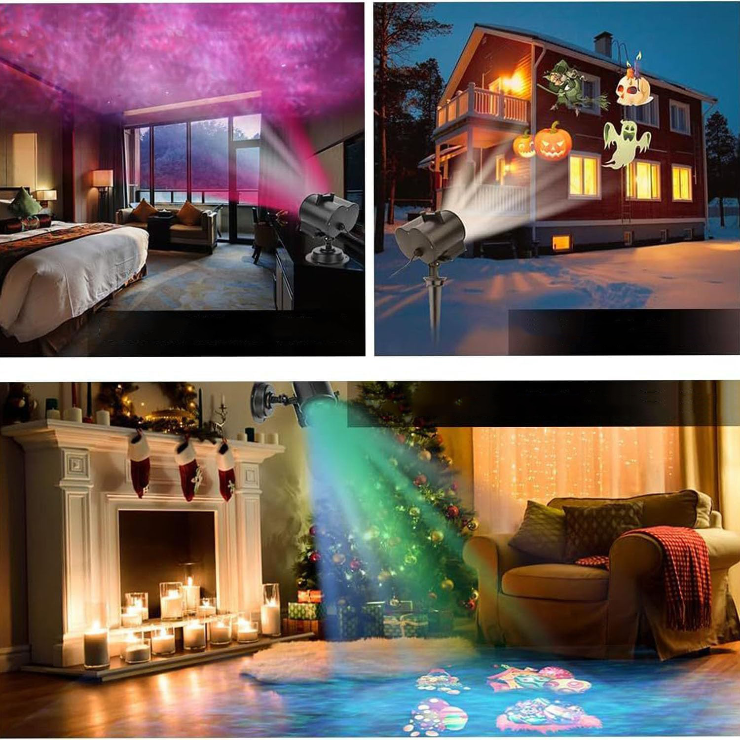 🌟🌟🌟【2 в 1 — эффект водной ряби и проектор на Рождество】Две проекционные головки, одна для эффекта водной ряби с 10 цветами, включая красный, белый, синий, зеленый, красно-зеленый, красно-синий, красно-белый, зелено-белый, зелено-синий и сине-белый. Это позволяет создать красивую и умиротворяющую ночную атмосферу. Вы также можете выбрать два проекционных эффекта одновременно, в то время как вторая проекционная головка переключается между 12 режимами, такими как Рождество и Хэллоуин.