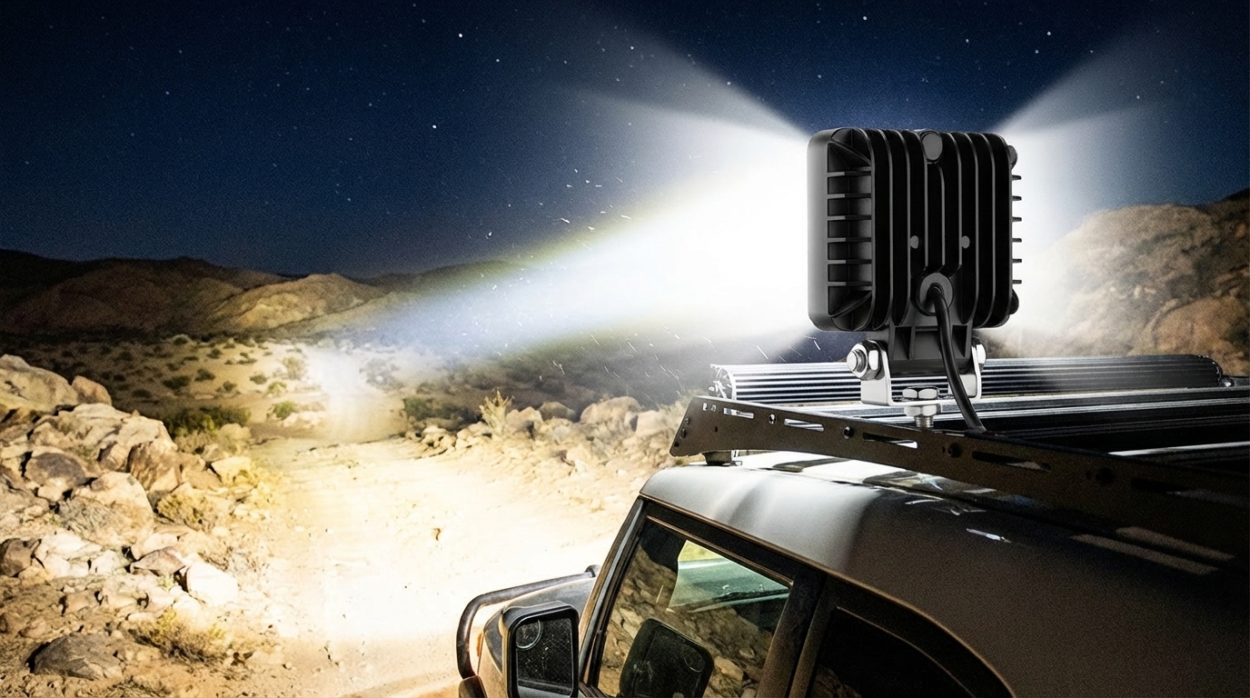 - Центральный прожектор дальнего действия: Центральный светодиодный модуль генерирует сфокусированный мощный луч света, который распространяется далеко вперед. Идеально подходит для быстрой езды по бездорожью или освещения удаленных рабочих точек.