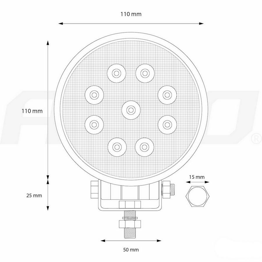 СВІТЛОДІОДНА РОБОЧА ЛАМПА 27W ГАЛОГЕННА 110mm 9-36V 2200LM
