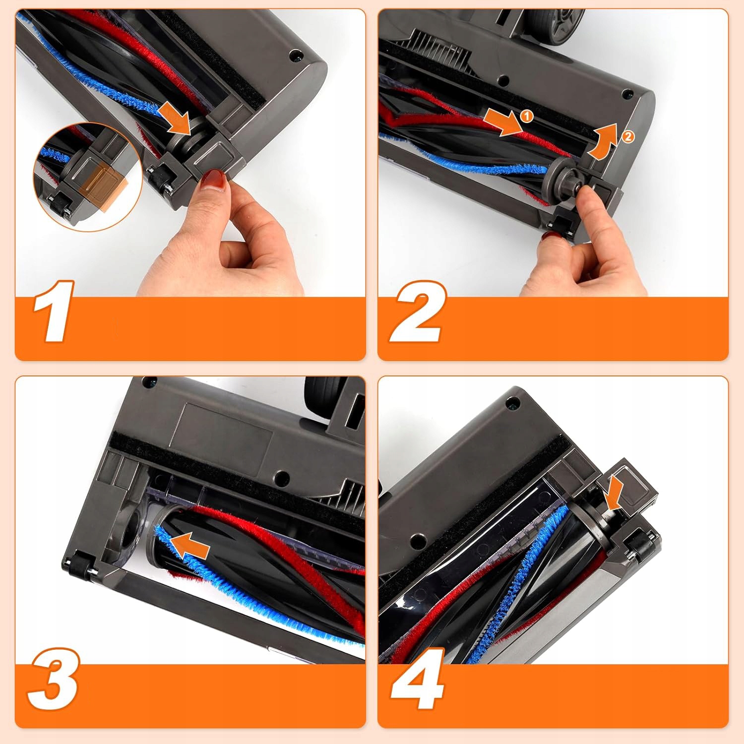 💎💎Простая замена. Щетка для пола просто подключается к пылесосу через красную заглушку, чтобы снять и удерживать красную кнопку. При замене щеточного валика просто возьмитесь за боковую часть и поверните, чтобы снять щеточный валик.