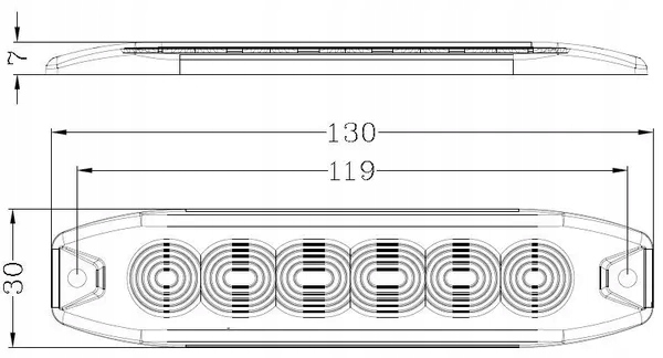 Світлодіодна сигнальна лампа, прямокутна, 10/30V, оранжева, 130x30x7 мм, 6 л
