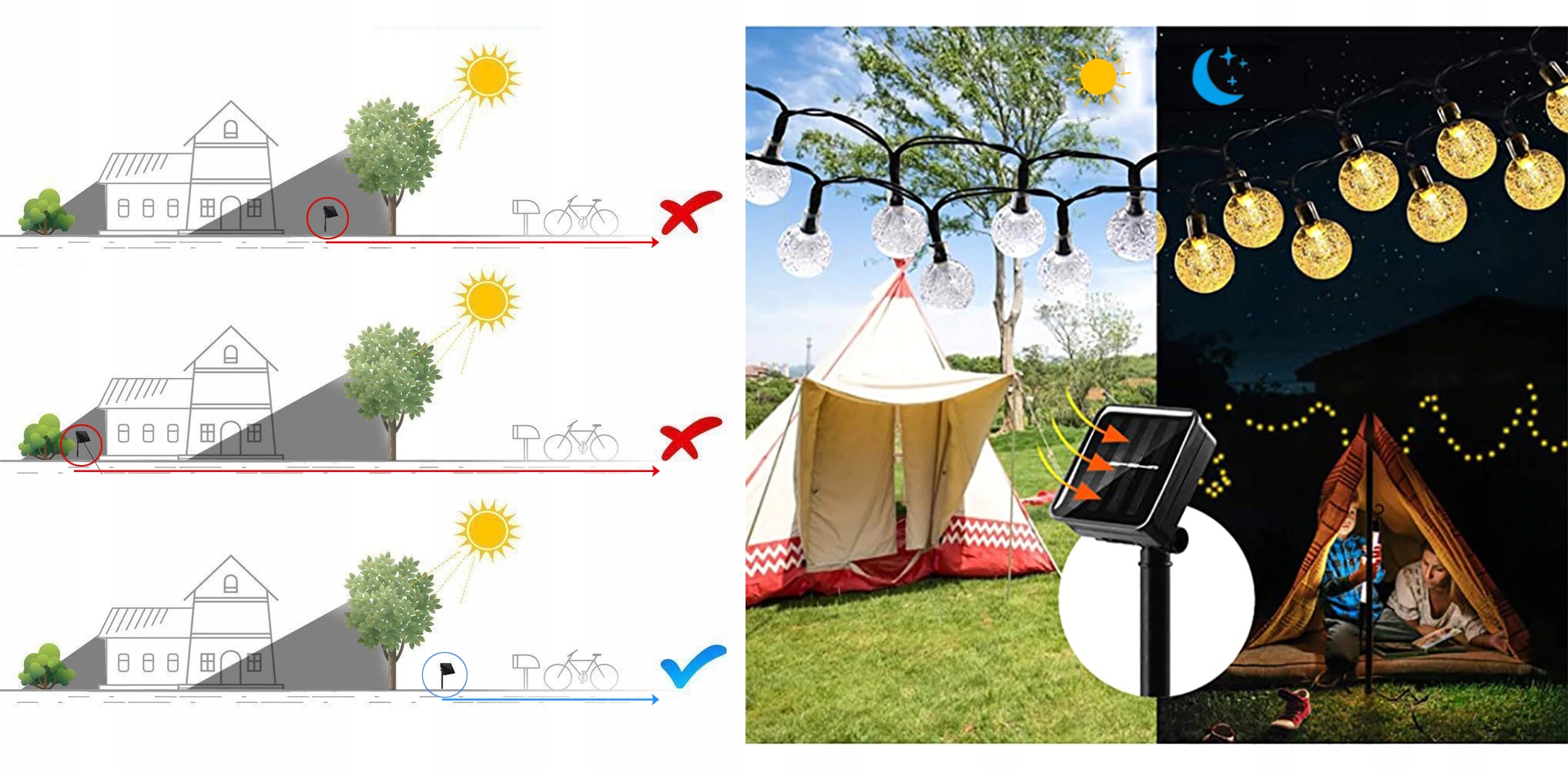 Высокоэффективная солнечная панель преобразует солнечную энергию в электричество и сохраняет ее в батареях фонаря. В сумерках гирлянда включается автоматически, используя накопленное электричество.