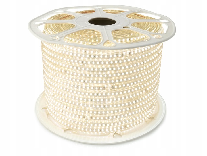 Светодиодная лента 230В с 2835 диодами мощностью 12Вт на 1м. Ленту можно разрезать на куски длиной от 1 до 100 метров. Он имеет высокий класс водонепроницаемости IP68.