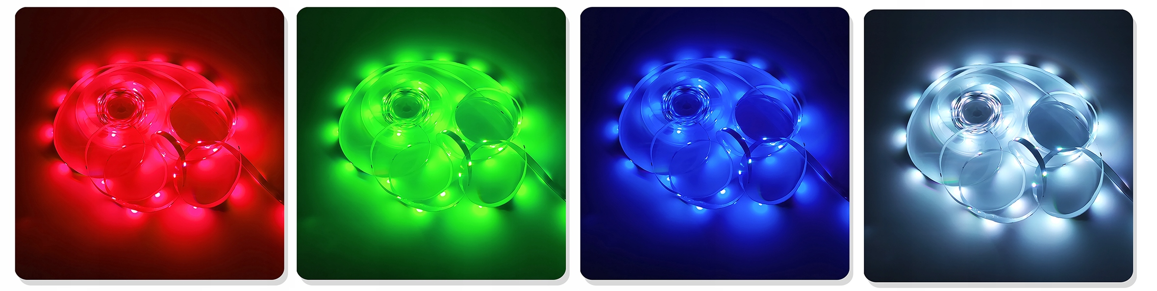 - Тип диода: 5050 3-чиповый RGB Epistar - каждый диод светится отдельным светом из палитры RGB, также холодным белым цветом с температурой 6000К.