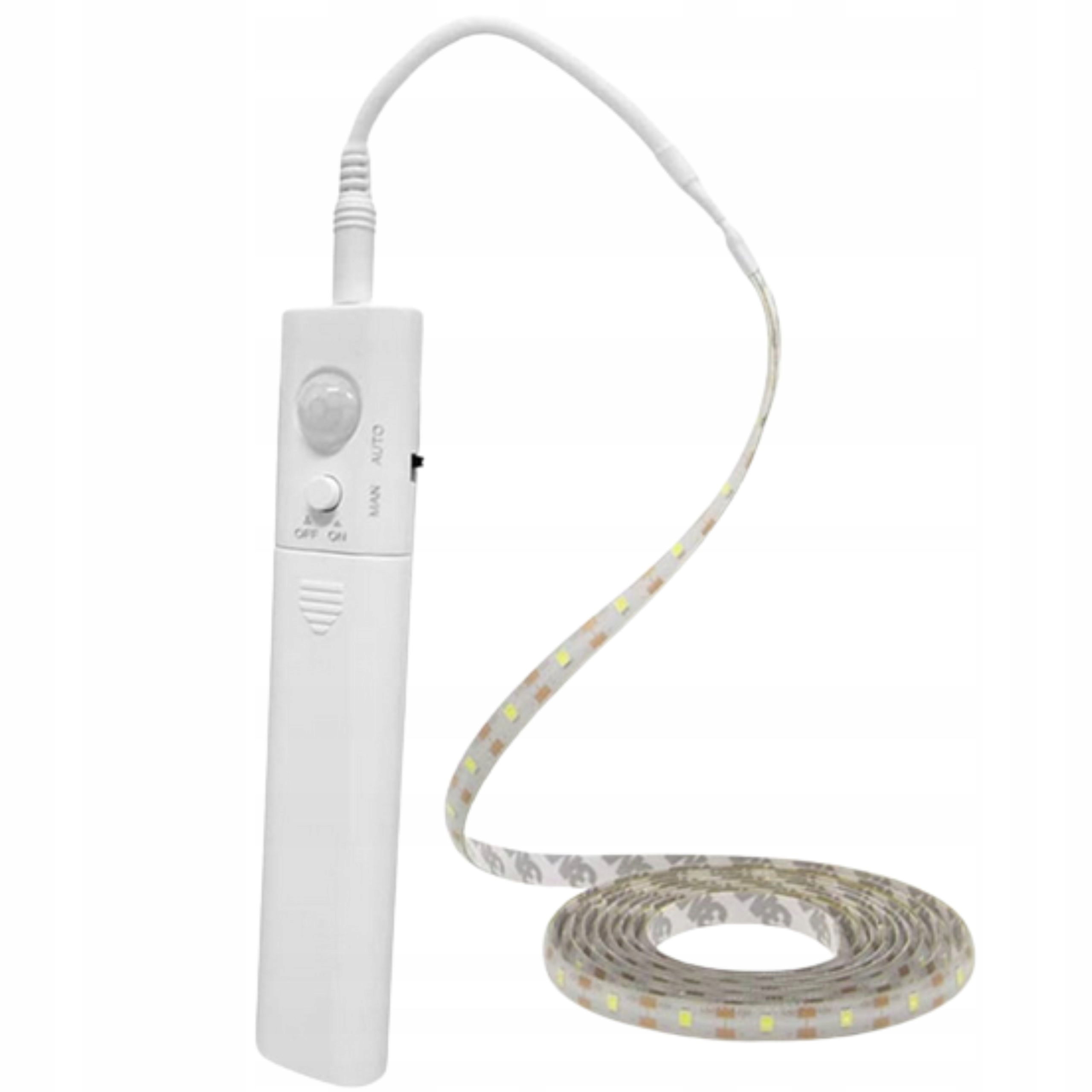 СВЕТОДИОДНАЯ ЛЕНТА С ДАТЧИКОМ ДВИЖЕНИЯ PIR ДАТЧИК ДЛЯ БАТАРЕЙ ААА, БЕЛАЯ 1М