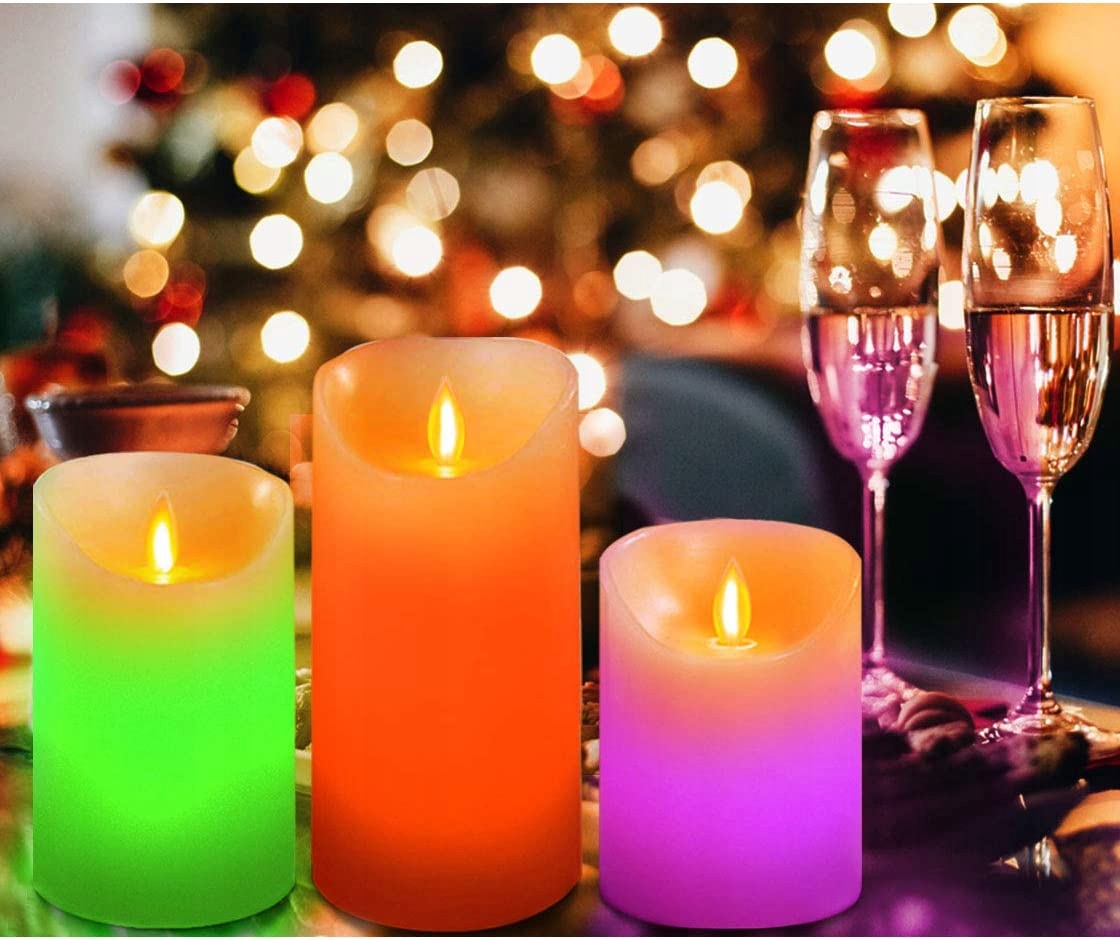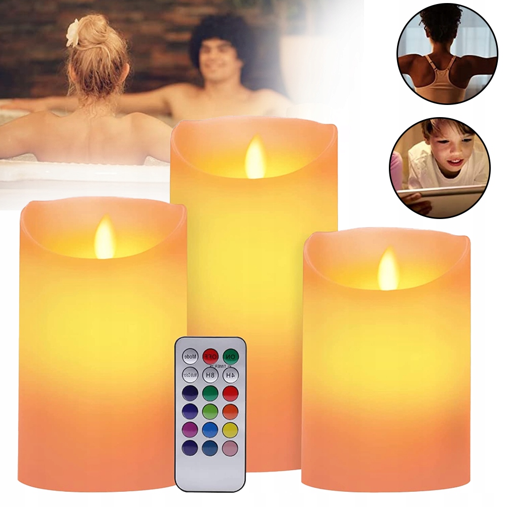 🕯️🕯️【Светодиодные свечи и информация о продукте】3 цветные мерцающие свечи из настоящего воска цвета слоновой кости (размер : 10 см/12,7 см/15,2 см), 1 пульт дистанционного управления. Батарейки в комплект НЕ входят.