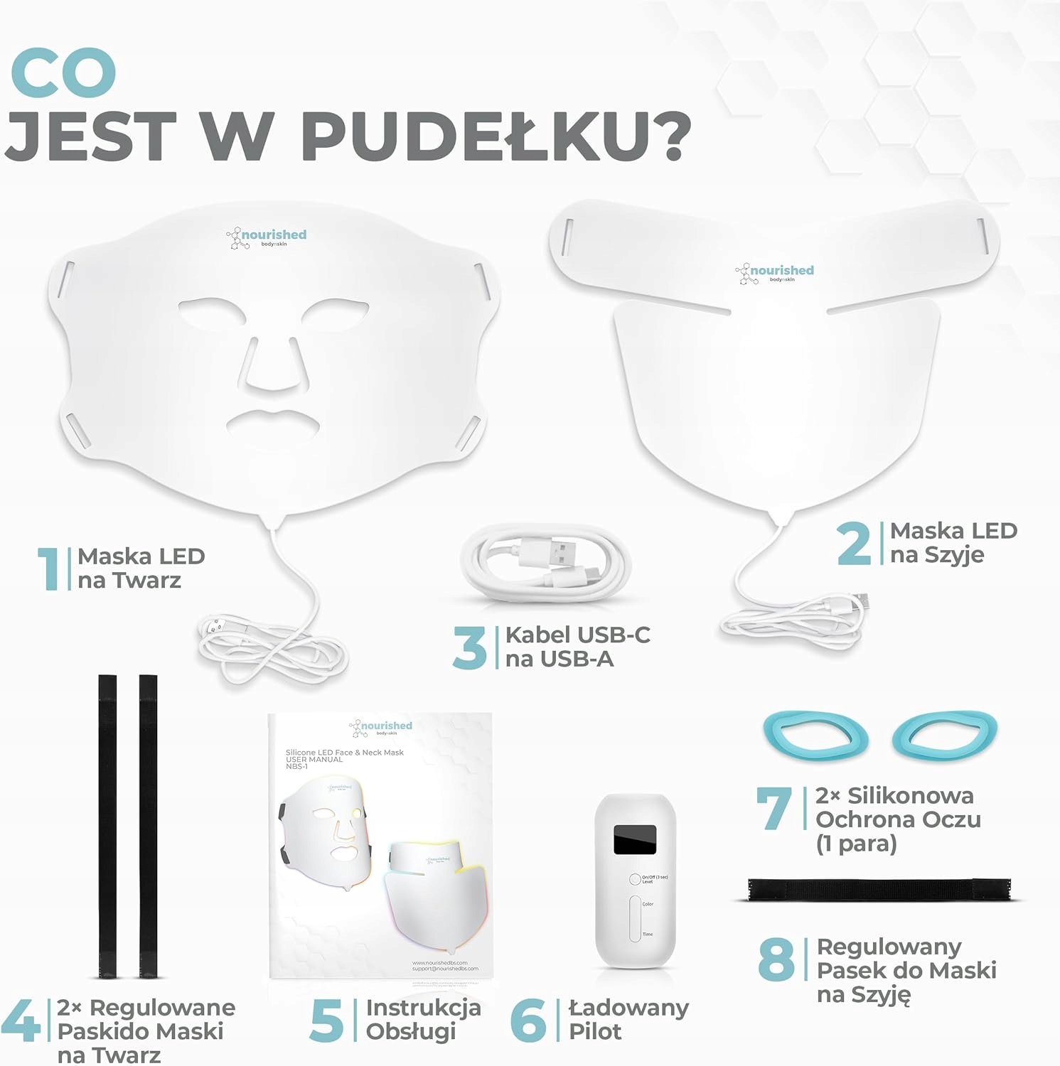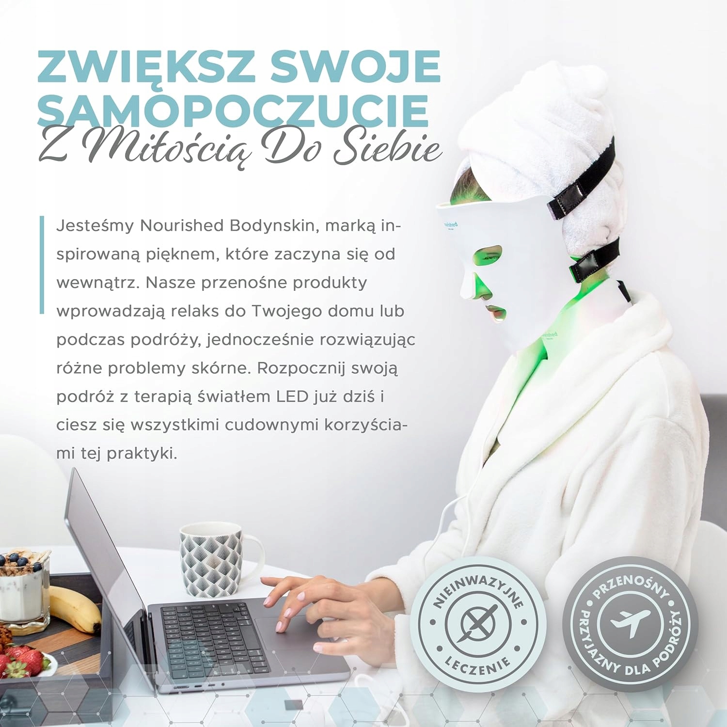 Светотерапевтическая маска Nourished Bodynskin для лица и шеи - Устройство для ухода за кожей лица - 7 цветов, красный и синий - Омолаживающий, антивозрастной продукт от морщин