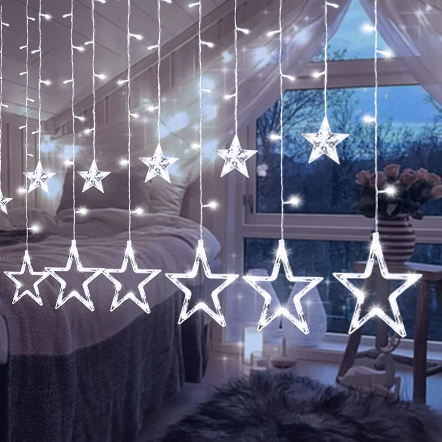 СВЕТОДИОДНАЯ СВЕТОВАЯ ЗАНАВЕСА «ЗВЕЗДЫ» Елочные гирлянды для окна