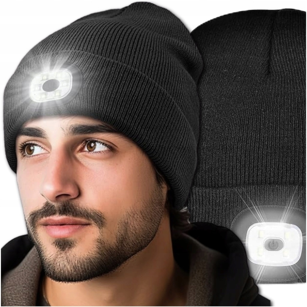 СВІТЛОДІОДНА ЗИМОВА ШАПКА ТЕПЛА З ФРОНТАЛЬНОЮ ЛАМПОЮ ДВОСТОРОННІЙ ЛІХТАРИК, ЩО ЗАРЯДЖАЄТЬСЯ USB