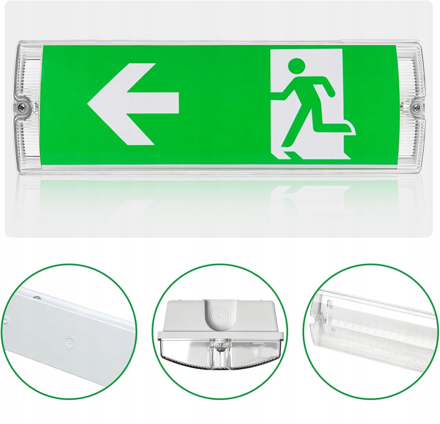 ◾ Встроенный высококачественный аккумулятор постоянно заряжается непосредственно от электричества, а в случае сбоя питания позволяет светодиодному освещению с аварийным выходом бесперебойно работать в течение 3 часов.