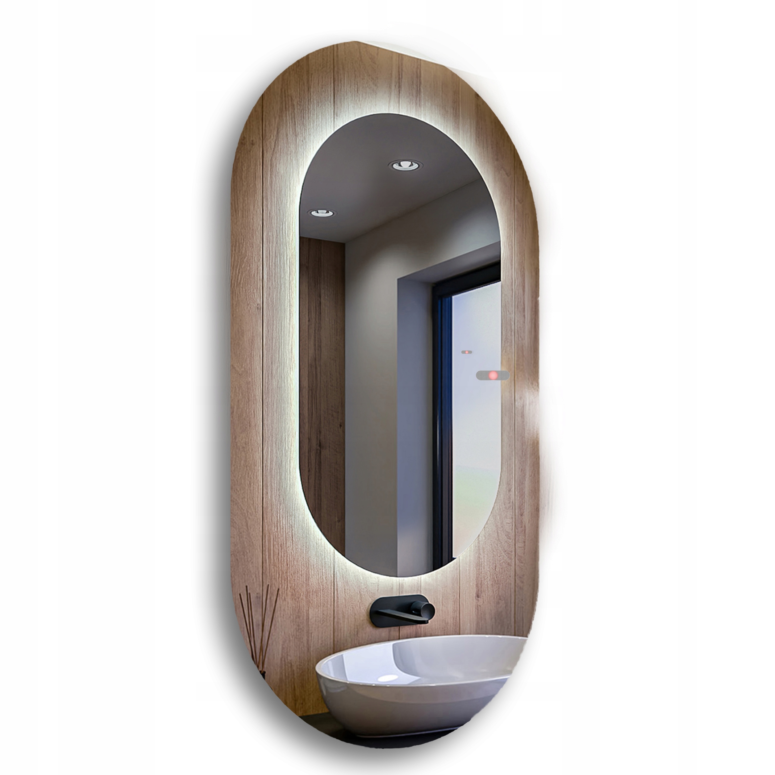 Просто коснитесь переключателя, чтобы быстро и интуитивно включить или выключить светодиодную подсветку декоративного зеркала! Выключатель не имеет функции памяти и регулировки яркости. Не рекомендуется подключать зеркало к настенному выключателю.