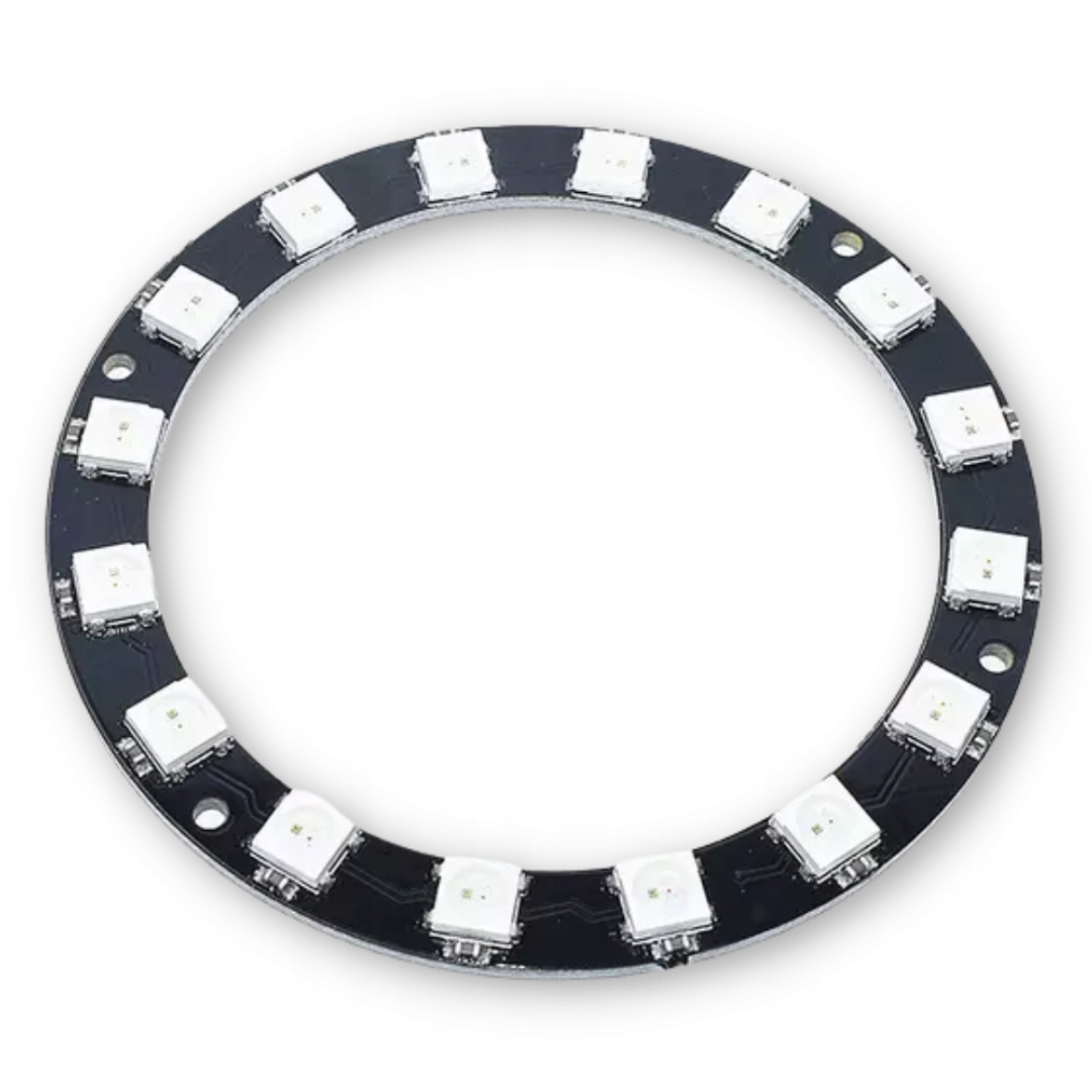 В корпусе 5050 (PLLC-4) размещено 16 RGB-светодиодов, размещенных по кругу диаметром 68 мм, благодаря чему ширина платы не превышает 6 мм. В кольцо встроен контроллер WS2812.