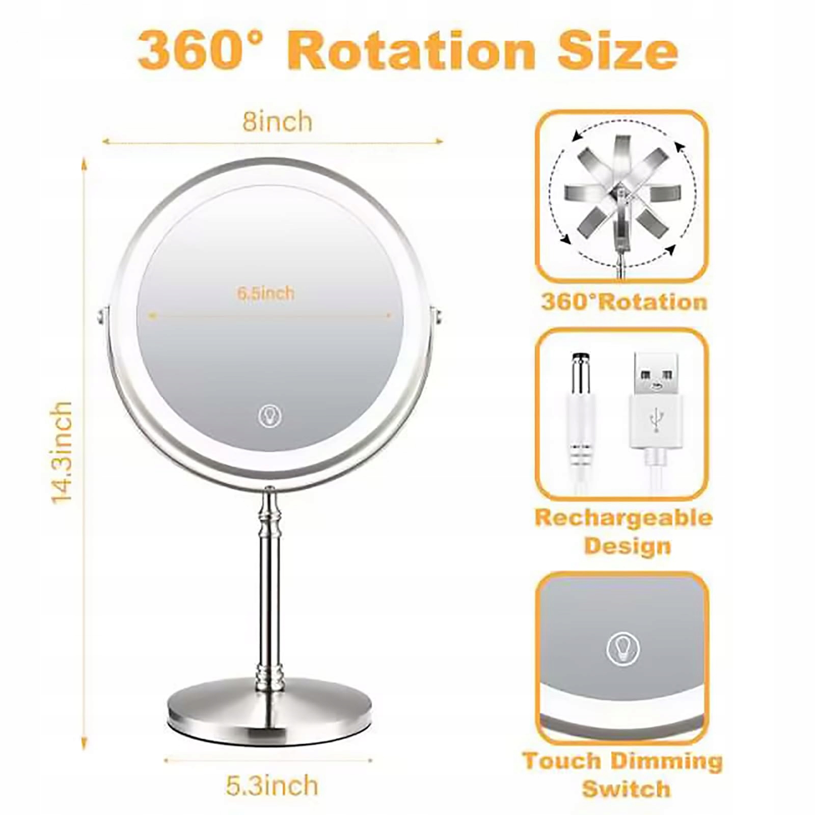 - [3 режима освещения и сенсорное затемнение] - Зеркало для макияжа с подсветкой имеет белый, теплый и естественный свет. Вы можете выбрать разные цвета огней в зависимости от макияжа, необходимого для разных случаев. Включите/выключите светодиодную подсветку с помощью сенсорного переключателя и нажмите и удерживайте, чтобы отрегулировать яркость света, короткое нажатие меняет цветовую температуру.