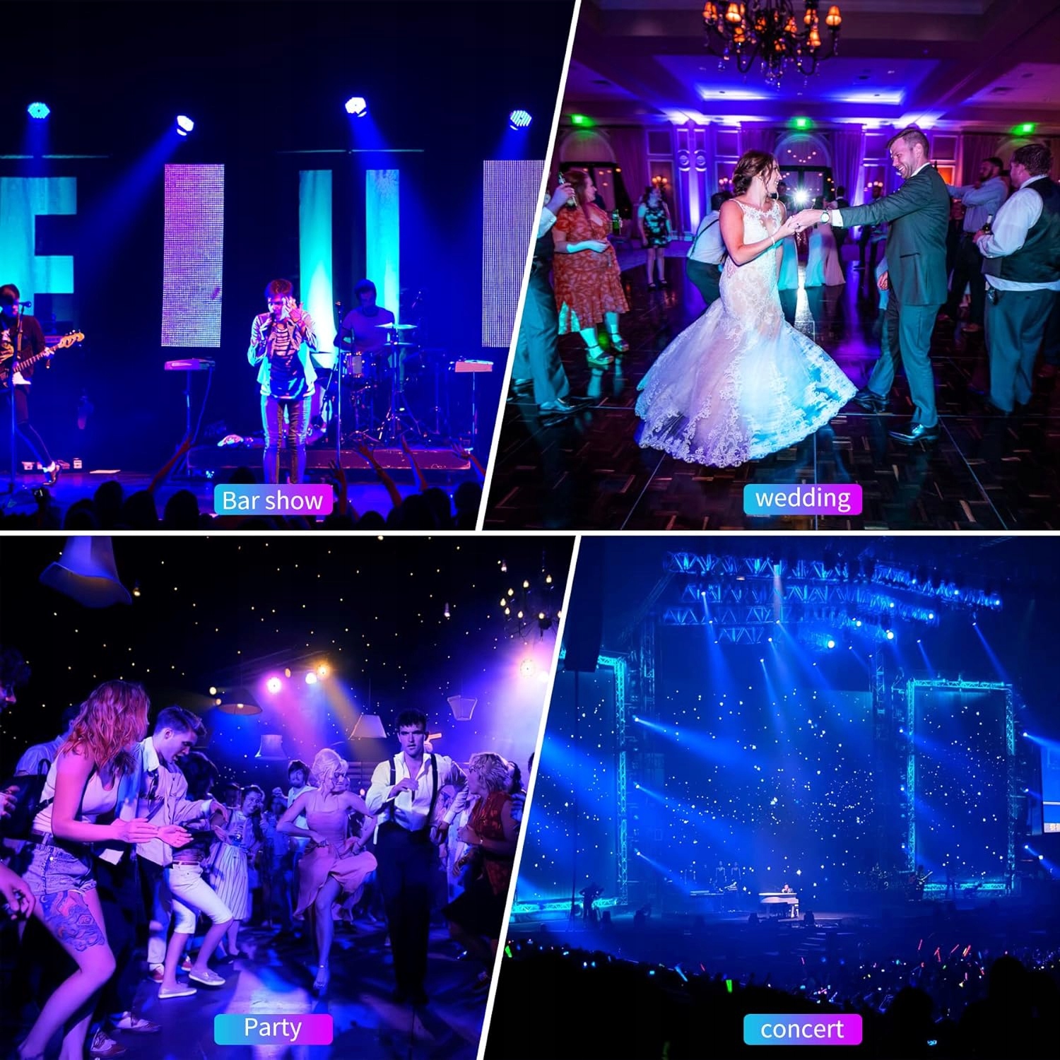 ✔ Консольное управление DMX-512: DMX512 — это профессиональный режим управления. Подключите светодиодный индикатор Par к консоли DMX. Инженеры по свету программируют красочные, привлекательные световые эффекты для мероприятий.