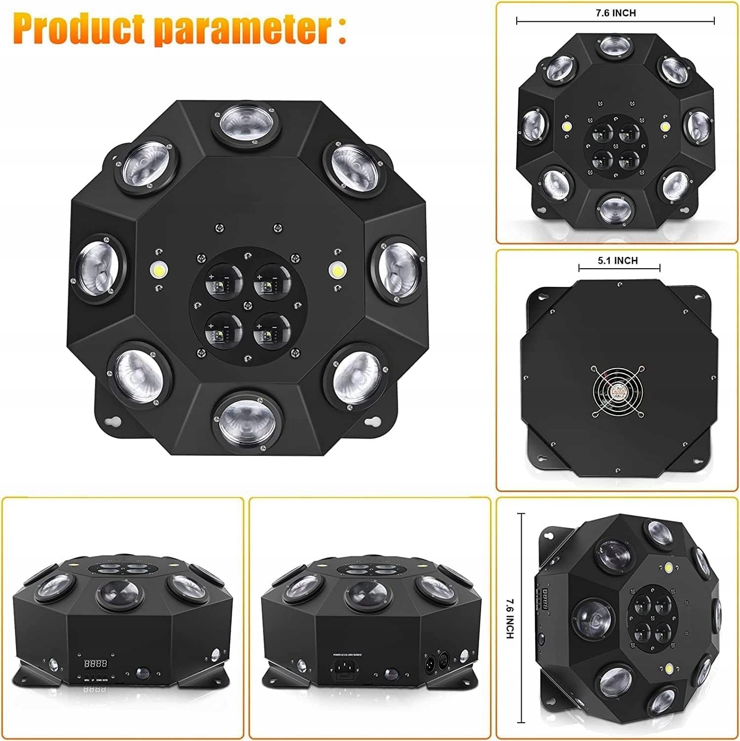 - 22 светодиода RGBW высокой яркости ZonQoonz 5 в 1 лире с подвижной головкой пчелы В подвижной головке используются светодиоды высокой мощности и высокой яркости, 8 * монохромный луч высокой мощности + 8 * монохромная бусина красителя + 4 * 4 дюйма - 1 светодиодная пчела бусина + 2 белые стробоскопические бусины, обеспечивающие чувствительное голосовое управление и динамическое освещение. Светодиодная движущаяся головка может вращаться бесконечно, свет яркий и яркий, насыщенность цвета луча высокая, ощущение движения полное.