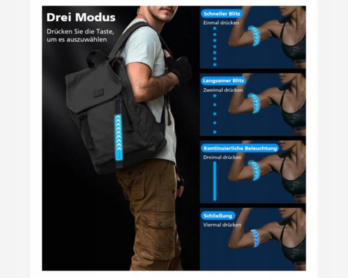 Браслеты имеют три режима свечения (постоянный свет, быстрая вспышка, медленная вспышка), которые помогают привлечь внимание окружающих к вашему присутствию и обеспечить вашу безопасность.