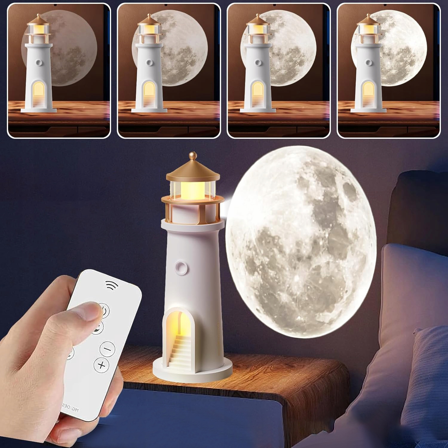 🔄 【Многофункциональный пульт дистанционного управления】 : маяк предлагает три режима работы: «Вкл» - обеспечивает непрерывное освещение, «выключение» - выворачивает свет и «Авто» - активирует режим дистанционного управления. Благодаря пульту дистанционного управления вы можете легко отрегулировать яркость, установить автоматический таймер и включить/выключить эффект проекции луны.
