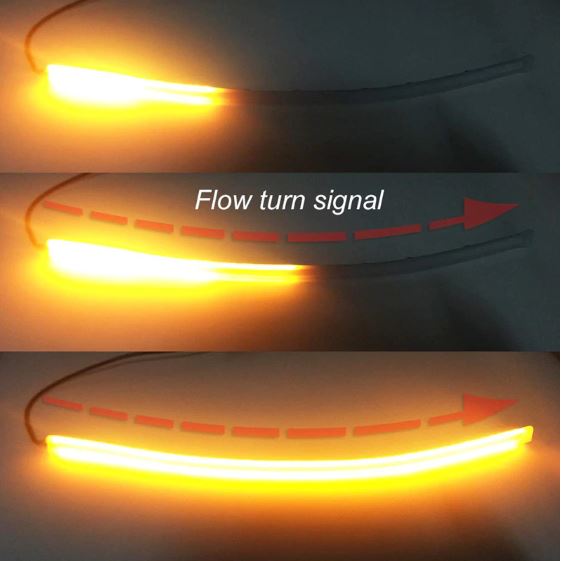 Полоски светятся белым (6000 К) при обычном вождении. и оранжевый при использовании поворотников.