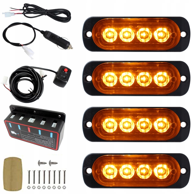 4 светодиода янтарного аварийного света, 18 режимов мигания, ультратонкий, для поверхностного монтажа, проблесковый маячок, аварийное освещение для автомобилей, внедорожников, грузовиков, пикапов, квадроциклов (4 шт.)