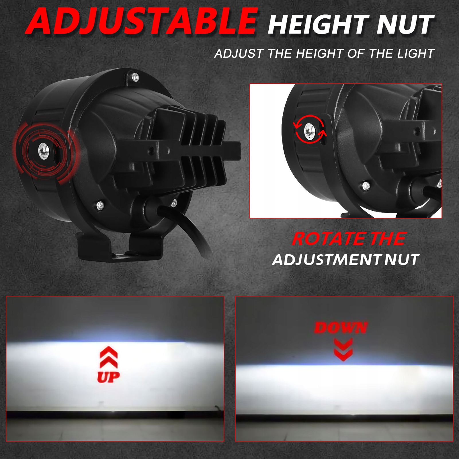 1. Мощные 3-дюймовые противотуманные фары: изготовлены из прочного авиационного алюминия со встроенными вентиляционными отверстиями для улучшения контроля тепла, обеспечения стабильной работы и длительного использования.