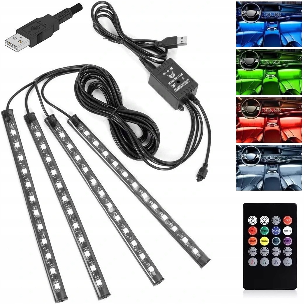✅Светодиодное внутреннее освещение, декоративная подсветка салона автомобиля, с USB-портом и инфракрасным пультом дистанционного управления