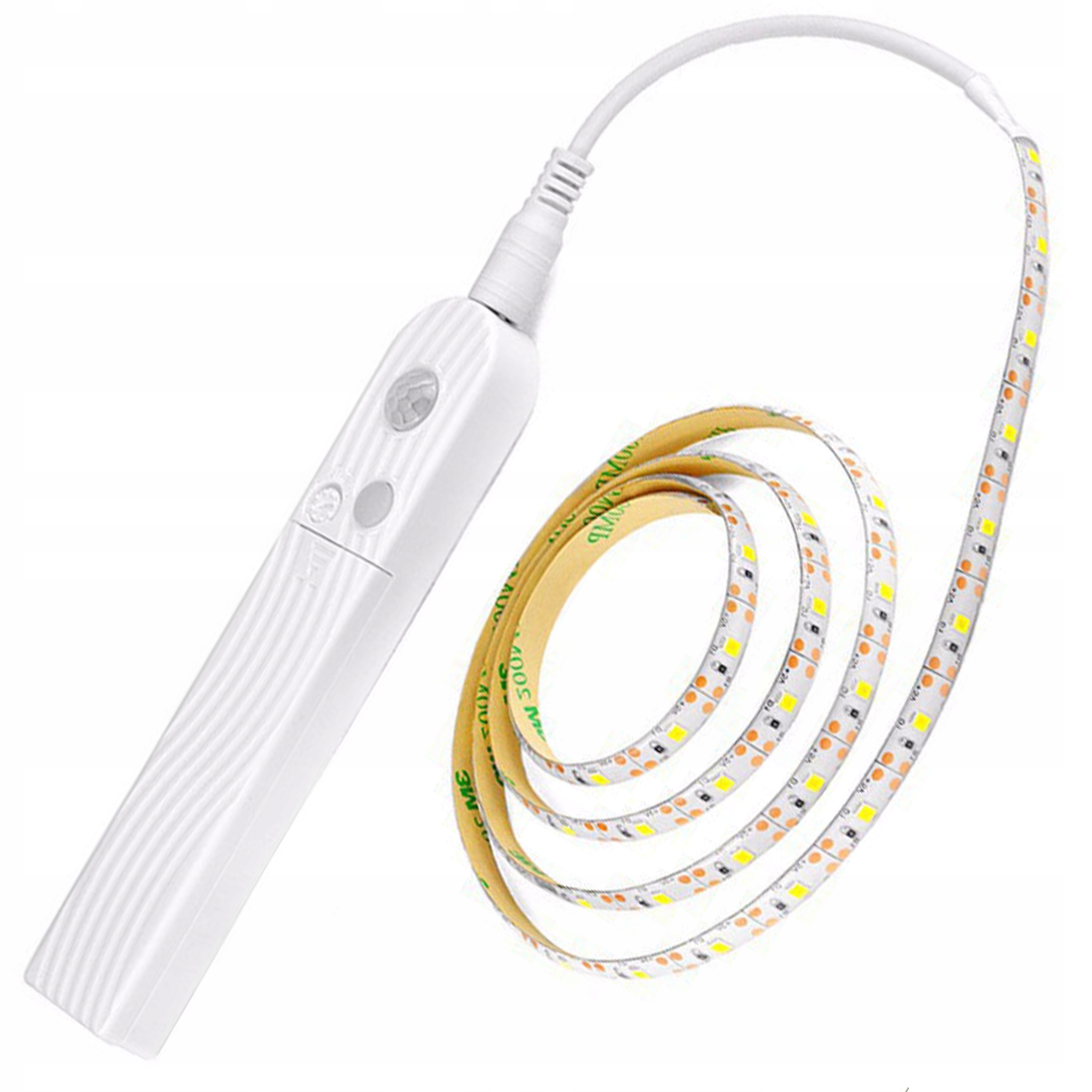 Светодиодная лента с датчиком движения и сумерек – идеальное решение для освещения мест, где подача электроэнергии затруднена или даже невозможна. Его можно использовать для мебели, шкафов и т. д. Благодаря датчику движения и сумерек его также можно использовать в коридорах, туалетах, в качестве подсветки кроватей и шкафов. Ленту можно приклеить к обезжиренной поверхности с помощью двустороннего скотча, который заклеен снизу. Есть возможность укорачивать ленту для каждого диода.