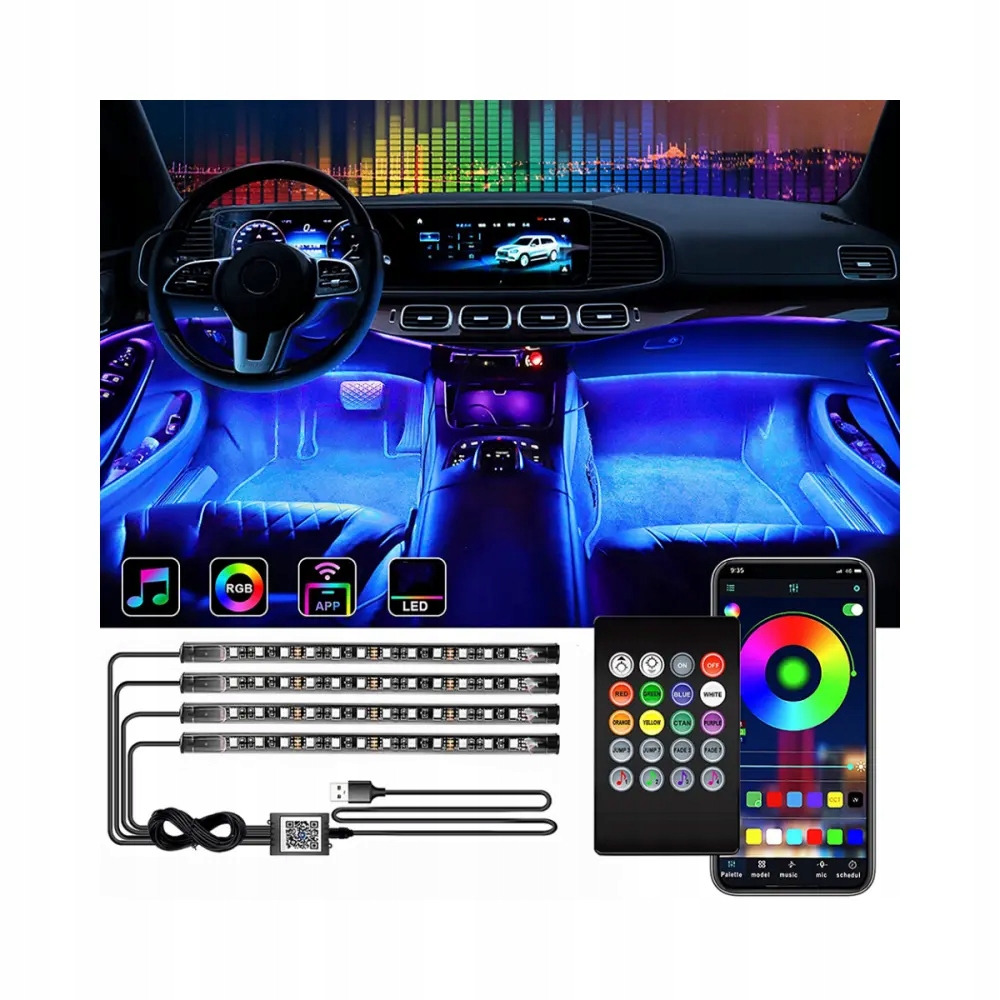 СВЕТОДИОДНАЯ ЛЕНТА ДЛЯ АВТОМОБИЛЕЙ RGB АВТОМОБИЛЬНОЕ ОСВЕЩЕНИЕ BLUETOOTH УДАЛЕННОЕ ПРИМЕНЕНИЕ