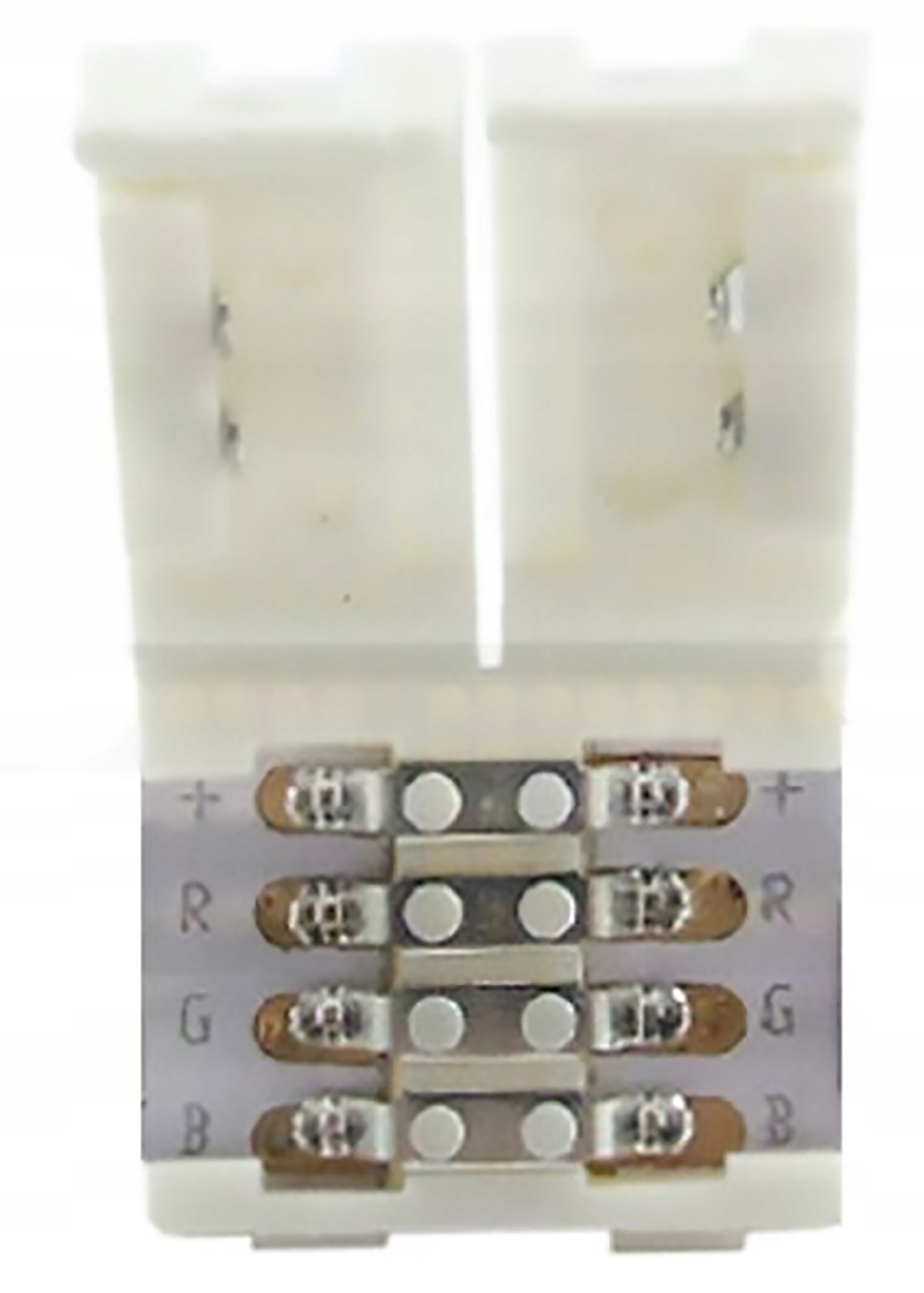 Быстрый разъем для подключения светодиодной ленты RGB к источникам питания. Разъем предназначен для простого и быстрого соединения двух светодиодных лент RGB без лишней пайки.
