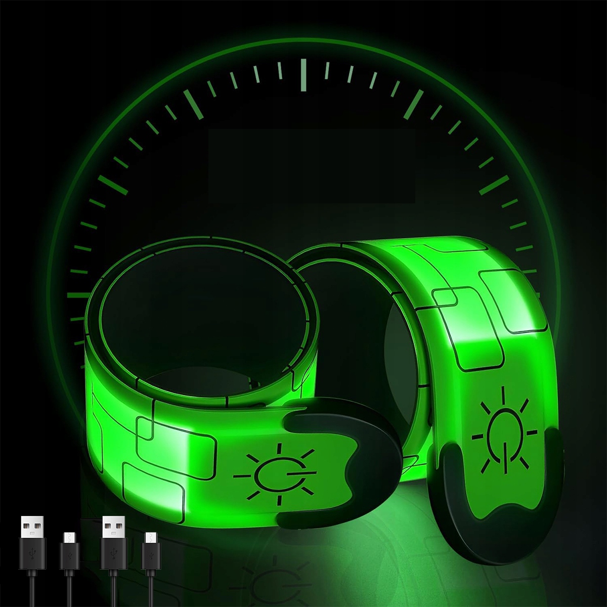 Набор из 2 перезаряжаемых светодиодных браслетов, светоотражающий светодиодный браслет с USB-C, светодиодный браслет со светящимся браслетом, сигнальная лампа, защитный светодиодный браслет Slap, унисекс для ночного бега, езды на велосипеде, бега (флуоресцентный желтый)