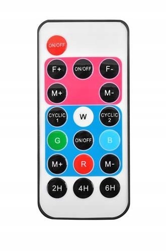 SДИСТАНЦИОННОЕ УПРАВЛЕНИЕ –проектор имеет пульт дистанционного управления, благодаря которому мы можем менять режимы, а также включать и выключать устройство даже на расстоянии 35 метров. Он имеет 18 кнопок и, следовательно, 17 интересных функций, таких как: таймер, изменение цвета, размахивание . В комплект входят батарейки и защитная фольга.