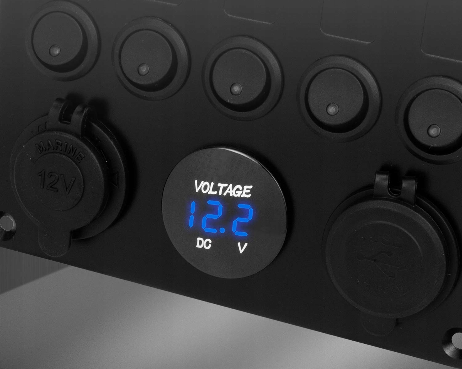 Цифровой вольтметр отображает ток уровня напряжения батареи. Он адаптирован для установки на плоских поверхностях, таких как панель панели, автомобильная обивка или в случае двух шлюх, например, в жилье.