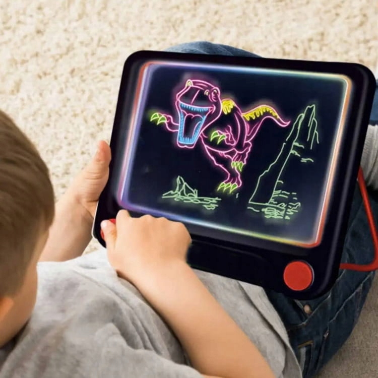 - планшет оснащен прозрачным экраном с подсветкой для рисования волшебными неоновыми маркерами.