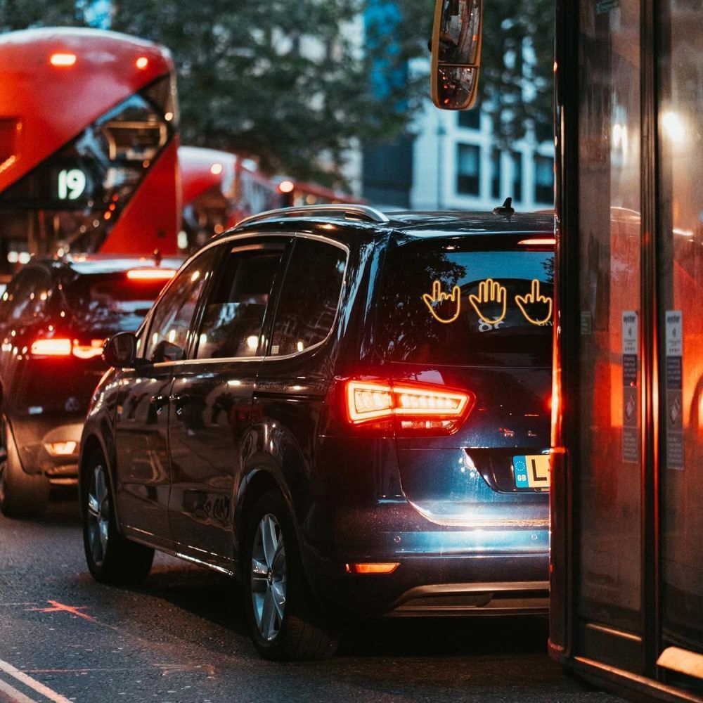 Светодиодный жест сигнализирующий устройство рукой на заднем окне.