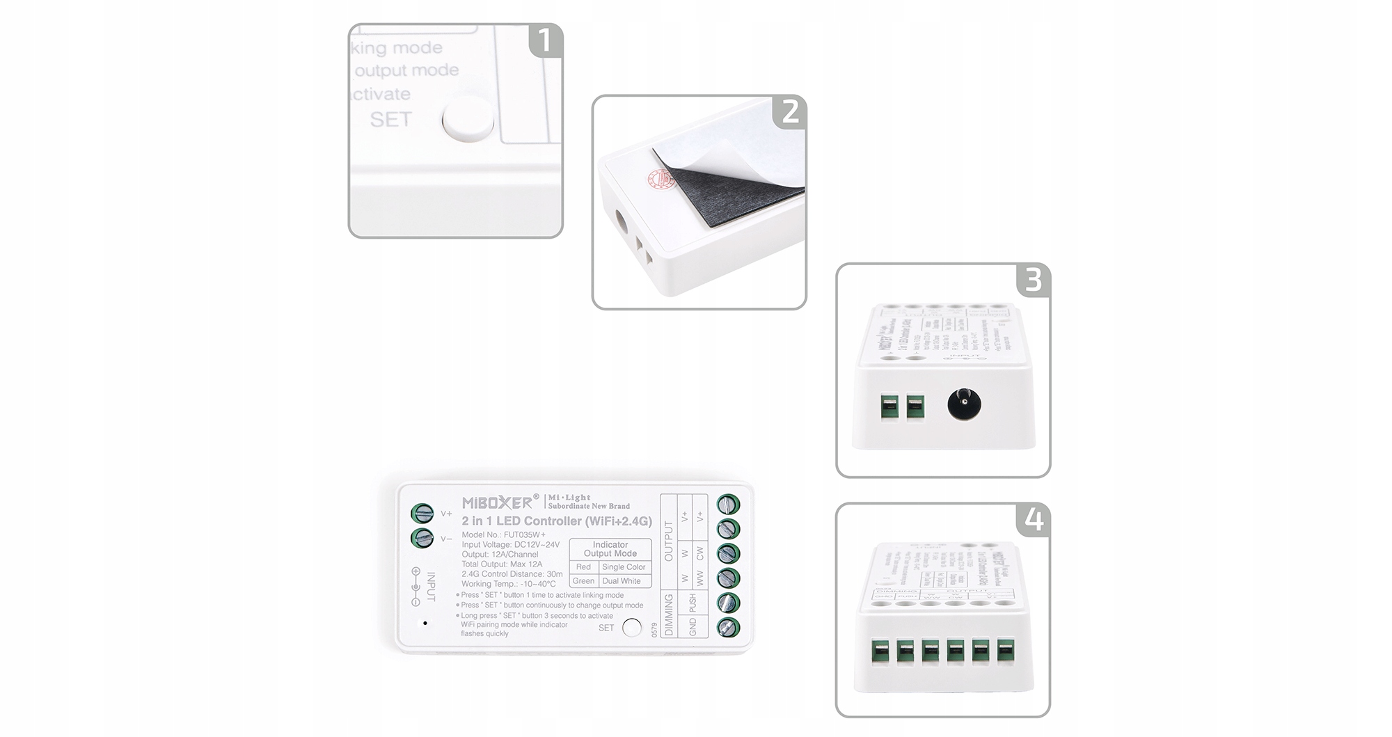 Светодиодный контроллер MI-Light 2IN1 FUN035W+ 2,4 ГГц для одноцветных и светодиодных полос CCT H1>
