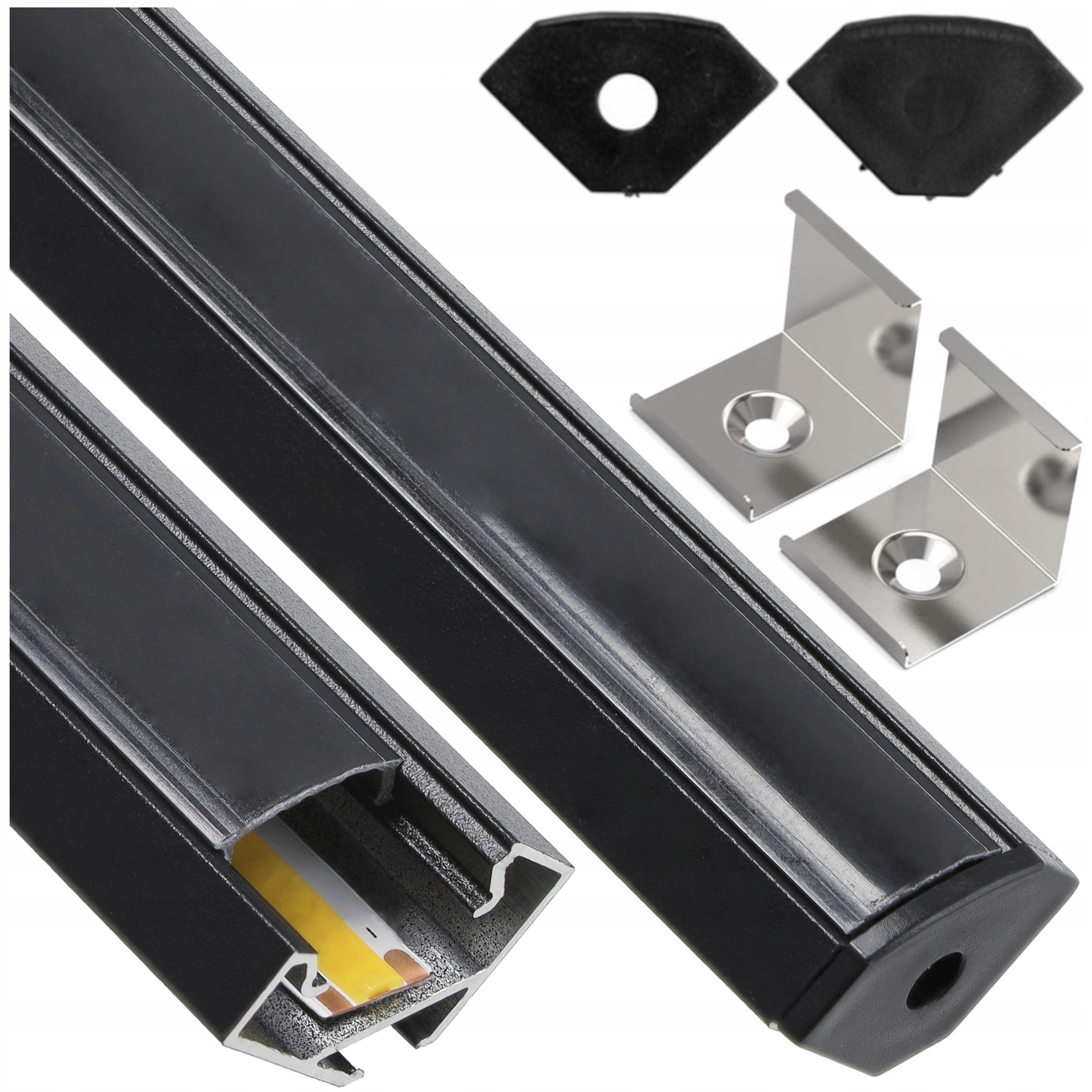 Светодиодный угловой профиль, черный алюминий, 1 м, черный угловой готовый комплект