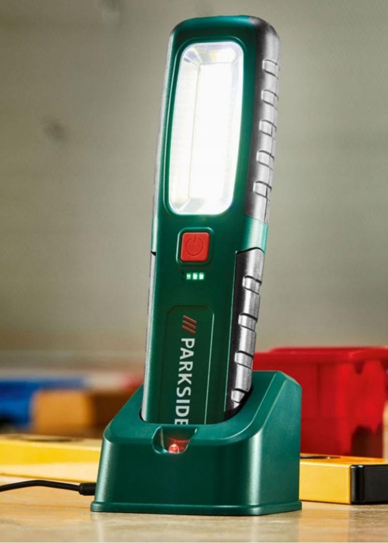 PARKSIDE АККУМУЛЯТОРНАЯ СВЕТОДИОДНАЯ ЛАМПА СО СВЕТОДИОДНЫМ ФАКЕЛОМ с зарядной станцией - для мастерской, для гаража, для дома