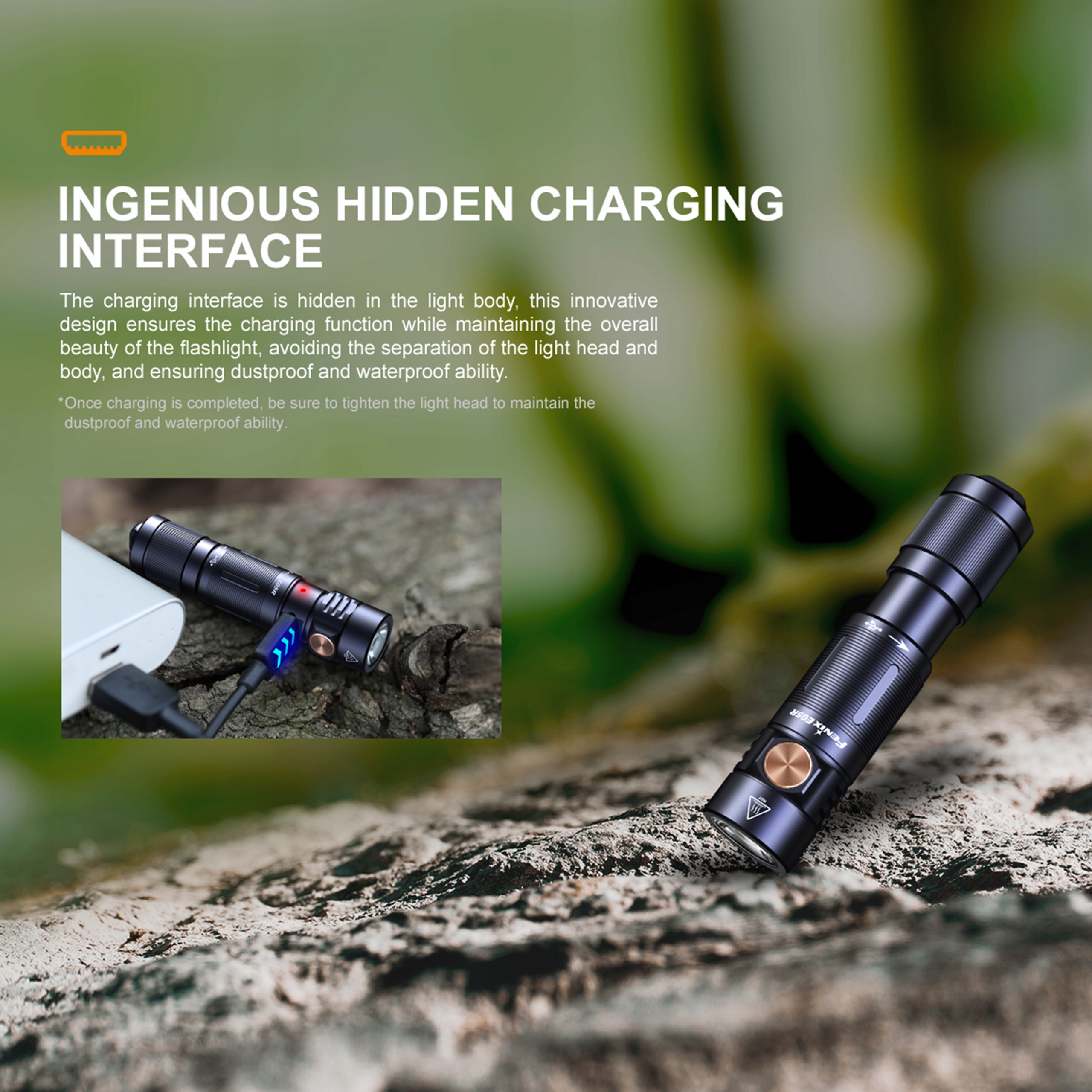 Fenix E05R — компактный EDC-фонарик в виде брелока, излучающий свет потоком 400 люмен, имеет 4 полезных режима освещения, дальность действия до 64 м и встроенный аккумулятор, заряжаемый через микро- USB-порт.