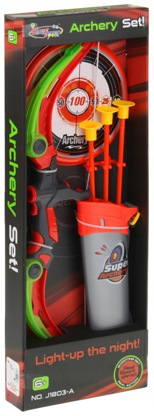 Набор для стрельбы из лука доставит вашему ребенку массу удовольствия как дома, так и на природе. Лук натянут на резинку, которую можно отрегулировать по своему усмотрению. Кнопка, расположенная в центре дуги, активирует 3 различных световых эффекта, которые сделают веселье еще более привлекательным. Каждая стрела имеет на конце резиновую присоску, что делает игру абсолютно безопасной. Щит обогатит соревнование в получении максимально возможного результата, а колчан с поясом облегчит хранение и переноску всего комплекта.
