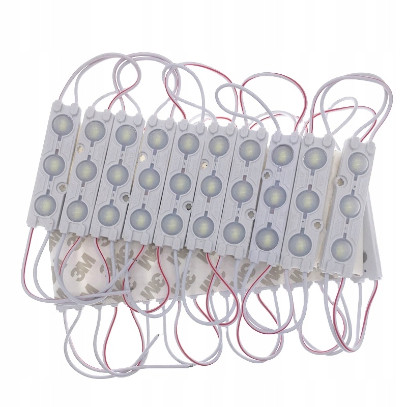 Он водонепроницаем, поэтому его можно использовать на открытом воздухе. Самым большим преимуществом модулей перед светодиодными лентами является большая гибкость при их установке. Благодаря использованию проводов между модулями можно будет осветить любую поверхность необычной формы. Модули могут быть соединены в очень длинные линии. Не забудьте выбрать подходящий источник питания 12 В. Снизу имеется двусторонний скотч 3М, что позволяет быстро и легко установить. Вы также можете использовать отверстие для крепления винта.