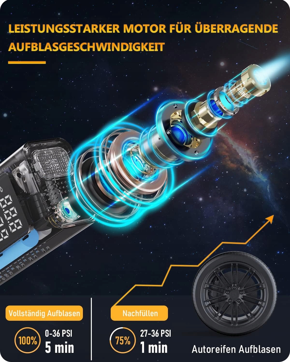 - Профессиональный, безопасный и высокий уровень обслуживания - Фивангин стремится обеспечить профессиональный воздушный насос с отличной эффективностью. Существует защита от аккумулятора, защита от чрезмерного разряда, защита от короткого цикла, недооценка защиты и мониторинга температуры. Вы можете использовать его без страха!