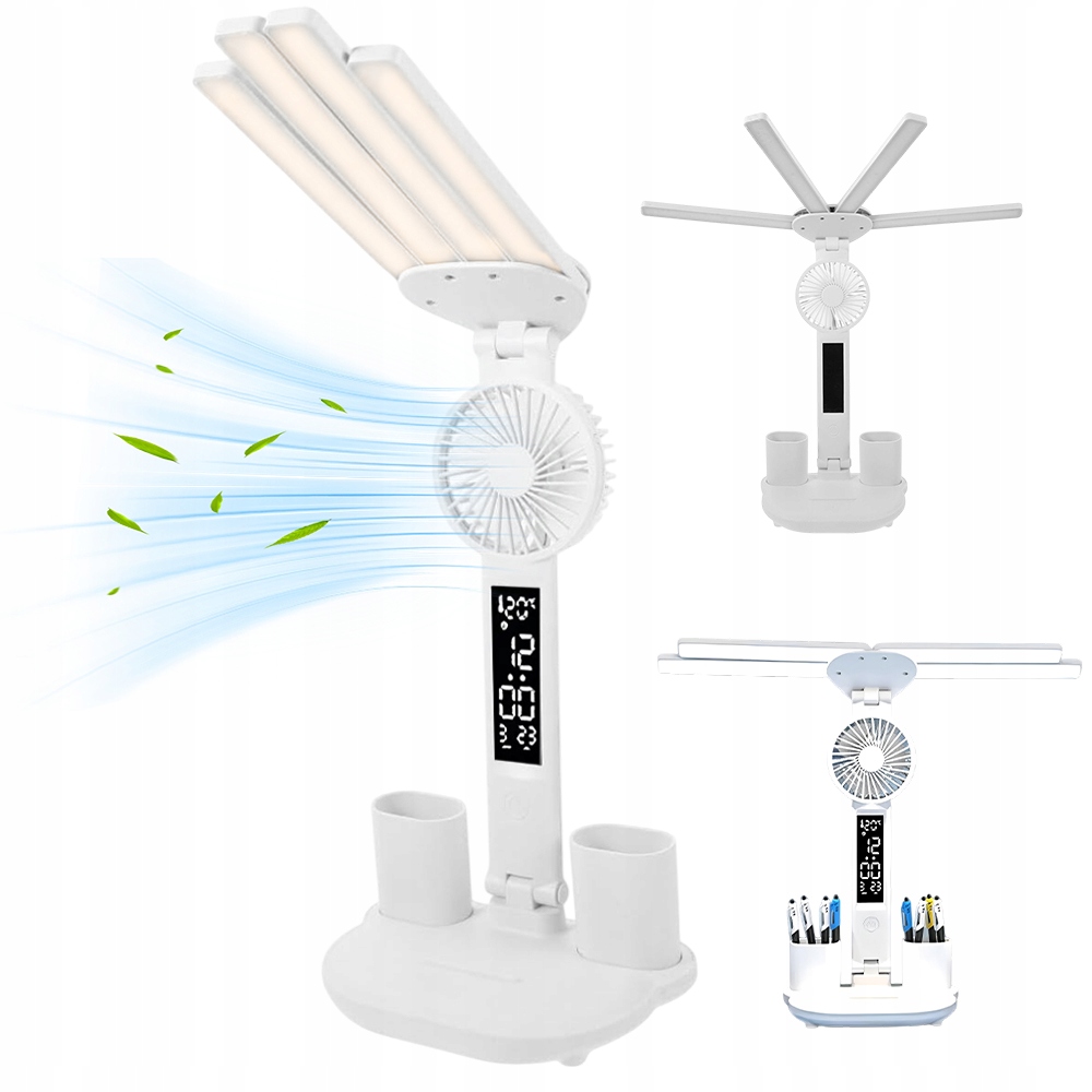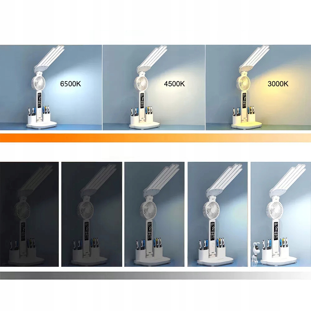 🏡 настольная лампа с вентилятором, ручка мобильного телефона, держатель пера, заряженный через USB, стабильную основу, 3 температуры цвета · -