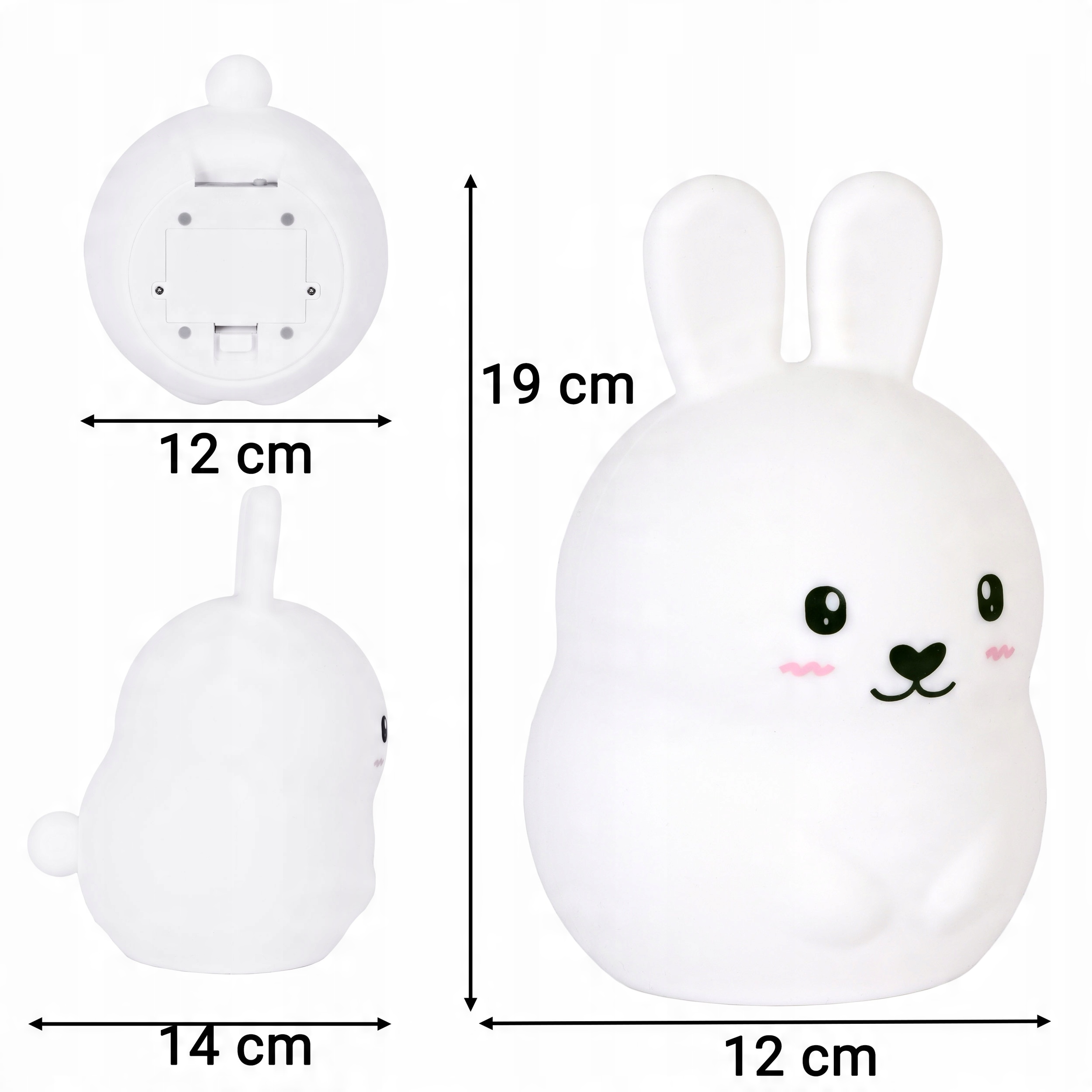 Милый светодиодный ночник в форме кролика — идеальный подарок для ребенка. Лампа изготовлена из мягкого и безопасного силикона и не содержит токсичных веществ. Благодаря этому продукт подходит и для самых маленьких. Этот очаровательный кролик имеет 3 режима работы, 9 цветов и 3 таймера. Благодаря успокаивающему теплому свету вы легко заснете. Ночник питается от 3-х батареек ААА или USB-кабеля, входящего в комплект. Управляется с помощью пульта дистанционного управления или постукивания по лампе. Ночью она служит лампой рядом с кроватью. Днем он превращается в потрясающее украшение.
