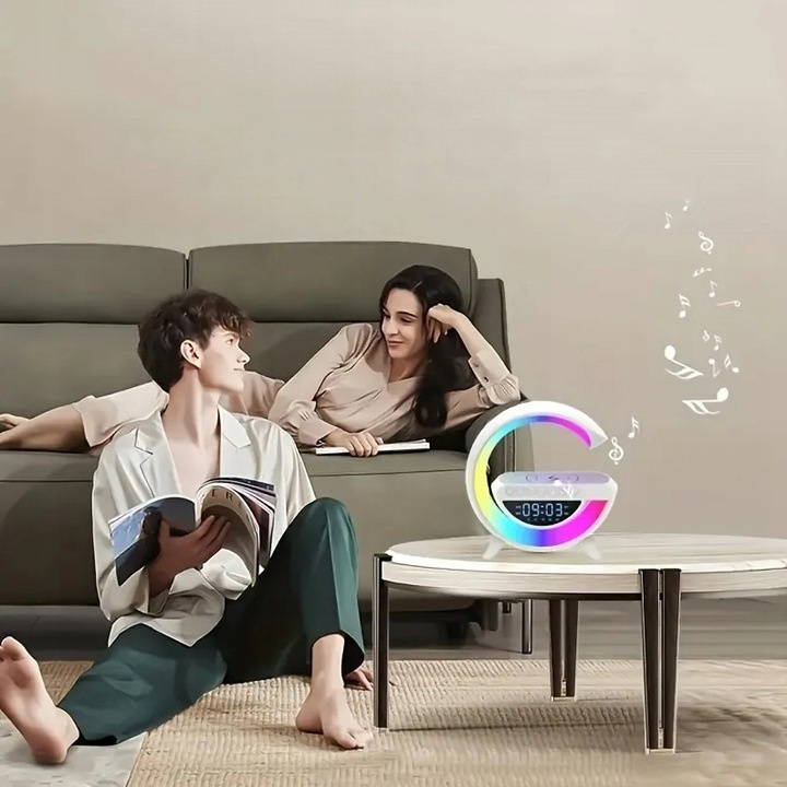 Светодиодный ночник с функцией зарядного устройства QI, динамиком RGB, радио, часами, портами USB, кард-ридером и AUX — код производителя MKCOM LED Magic Lamp.