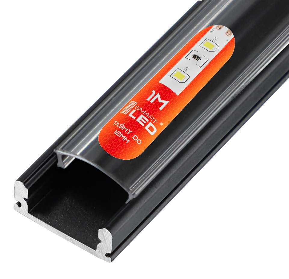 СВЕТОДИОДНЫЙ ПРОФИЛЬ для ЛЕНТЫ Черный + ЛАМПА Прозрачный 1М