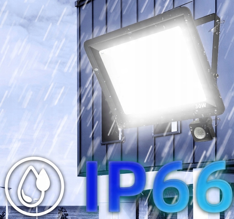 Светодиодный прожектор 30 Вт с датчиком движения. Вы ищете качественный прожектор, который идеально осветит подъездную дорожку, въезд в гараж или строительную площадку?* Вы попали по адресу! *ЗНАКОМЬТЕСЬ С ОСНОВНЫМИ ХАРАКТЕРИСТИКАМИ ПРОДУКТА: Встроенный датчик движения и сумерек. Регулируемый датчик движения и сумерек. Холодный белый цвет света (6000К), Высокая светоотдача, Современный и энергосберегающий светодиодный источник света SMD, Высокая долговечность света. источник, Алюминиевый корпус, обеспечивающий превосходный отвод тепла, Гибкий, черный кабель OMY 3x0,5, длина 15 см, Высокая устойчивость к суровым погодным условиям (IP66)