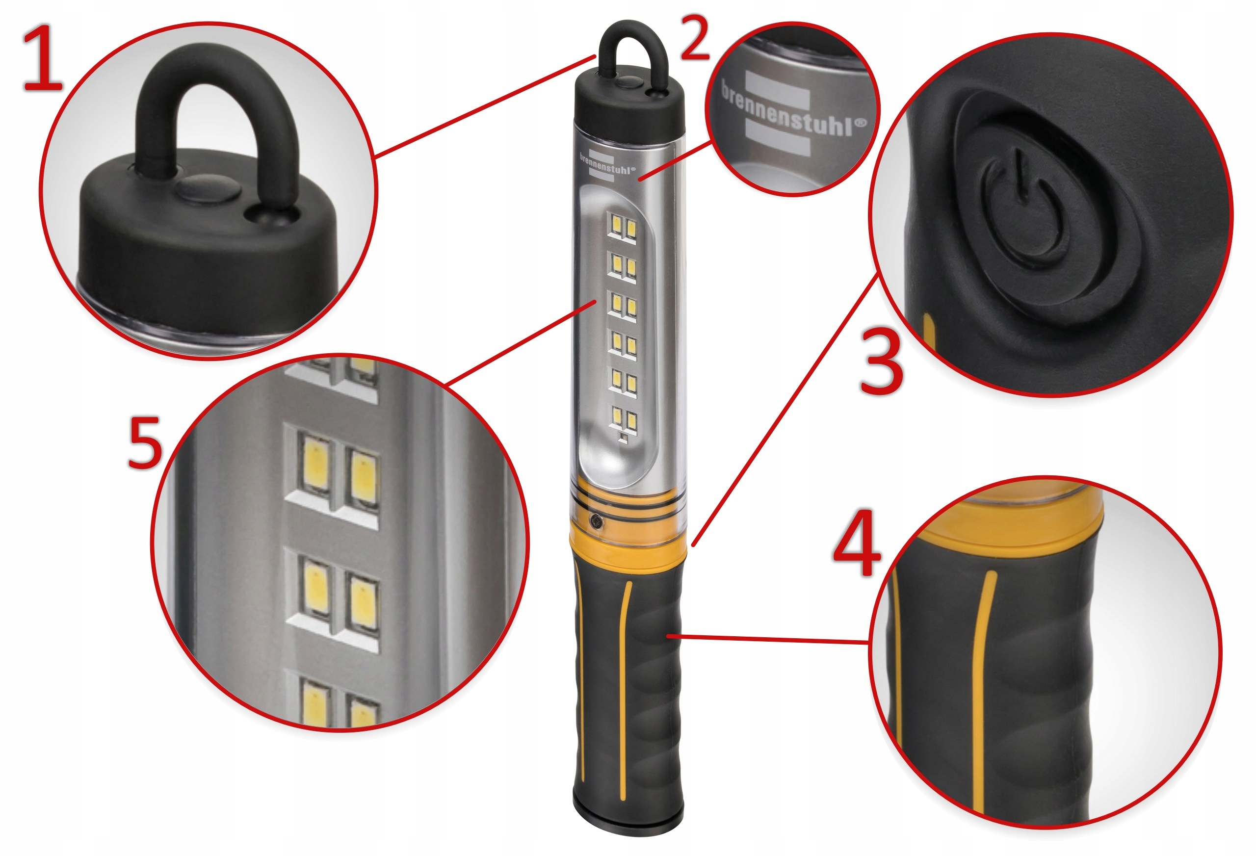 Лампа для мастерских с 12 сверхяркими SMD-светодиодами обеспечивает длительное время горения благодаря 3 уровням переключения 100% - 40% - 10%.