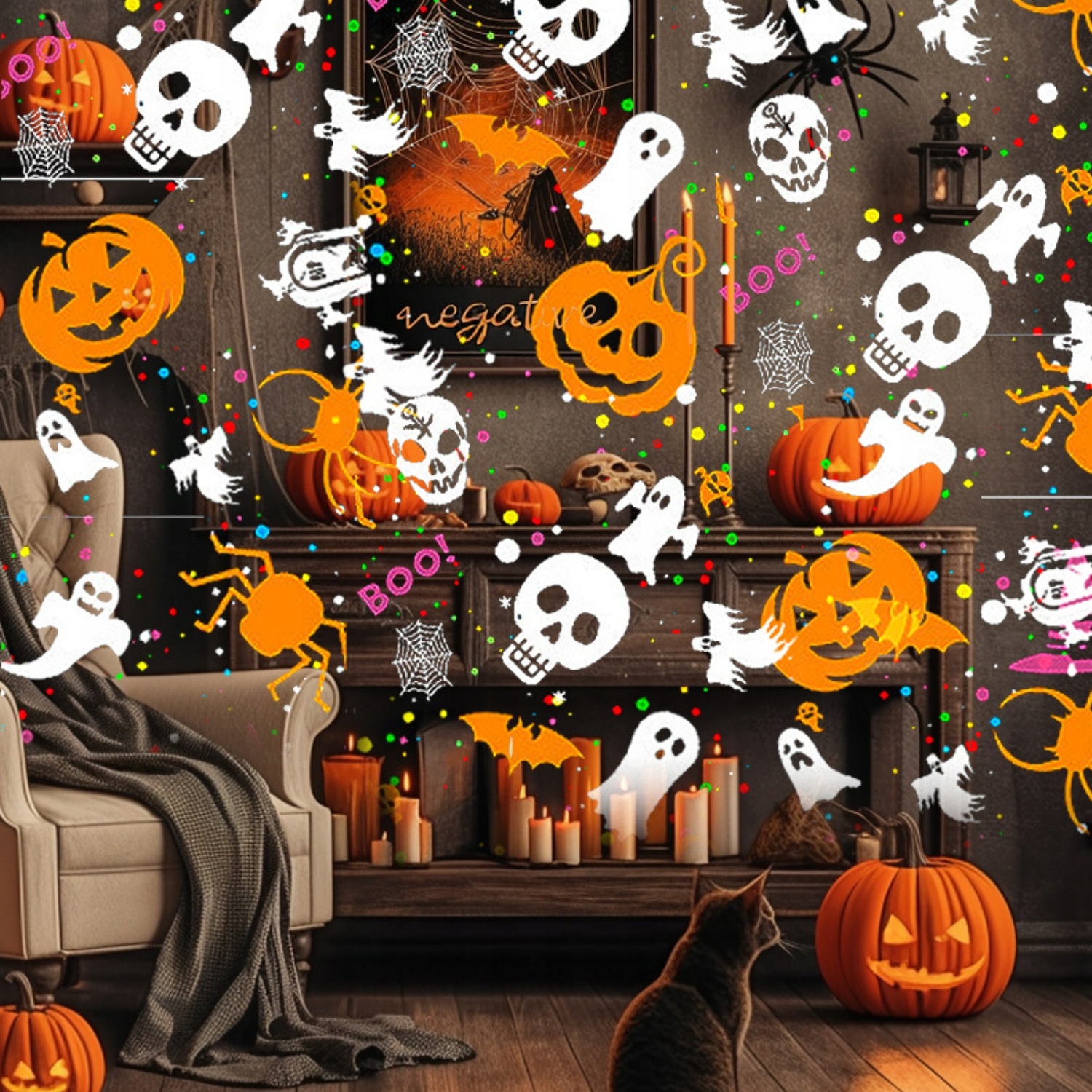 Светодиодный проектор с динамическим рисунком, красочной лампой, создающей атмосферу для вечеринки, сцены, бар - проекция на Хэллоуин (черный) h2>
