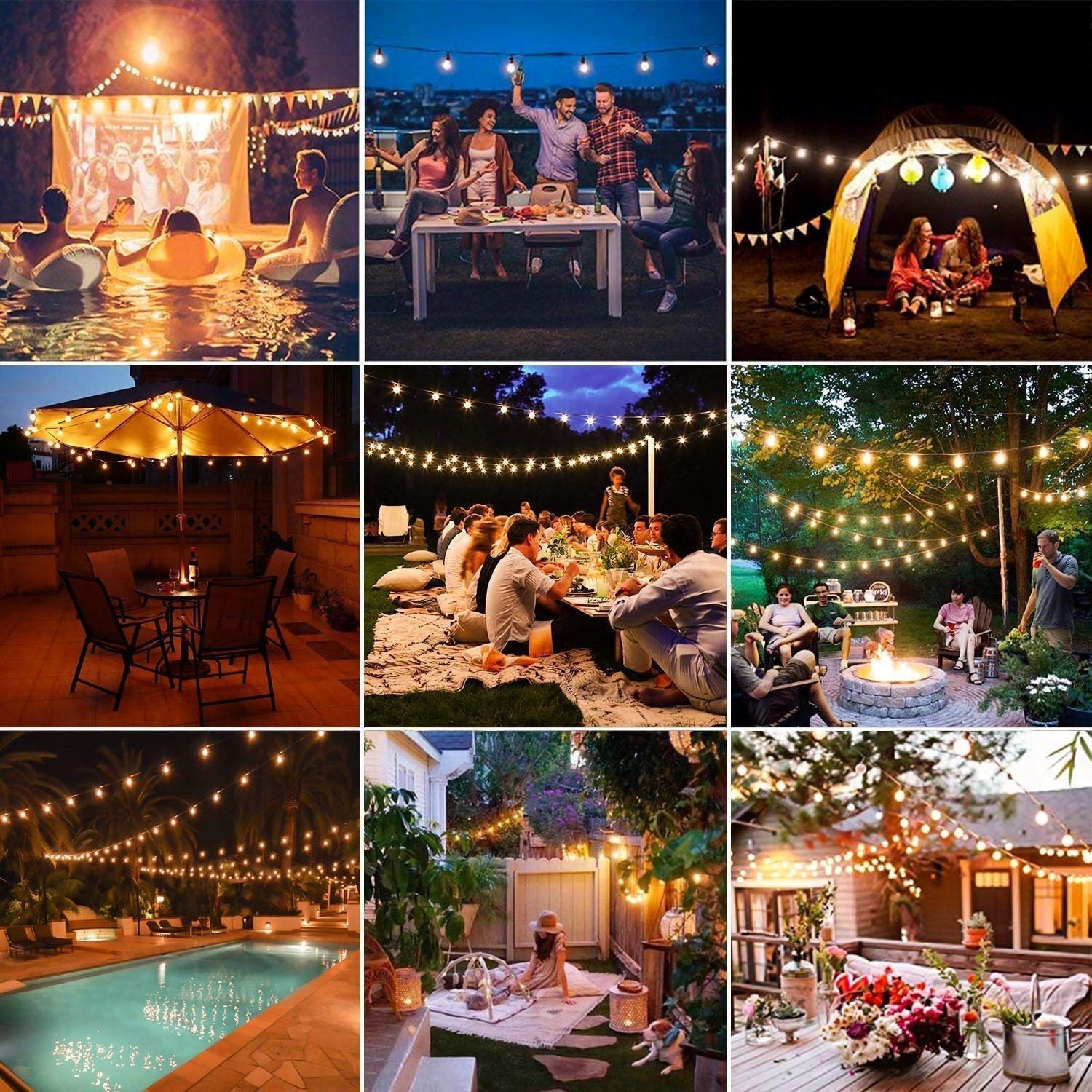 Легкая цепь с теплым белым цветом 2300 К обеспечивает теплую, мягкую атмосферу, в которой вы можете наслаждаться красивыми ночами и романтическими ужинами с семьей и друзьями. Идеальное удобное и универсальное освещение для террасы, палубы, крыши, капюшона, свадьбы, вечеринки, Рождества, солнцезащитного крема, сада, бара, перголы и т. Д.